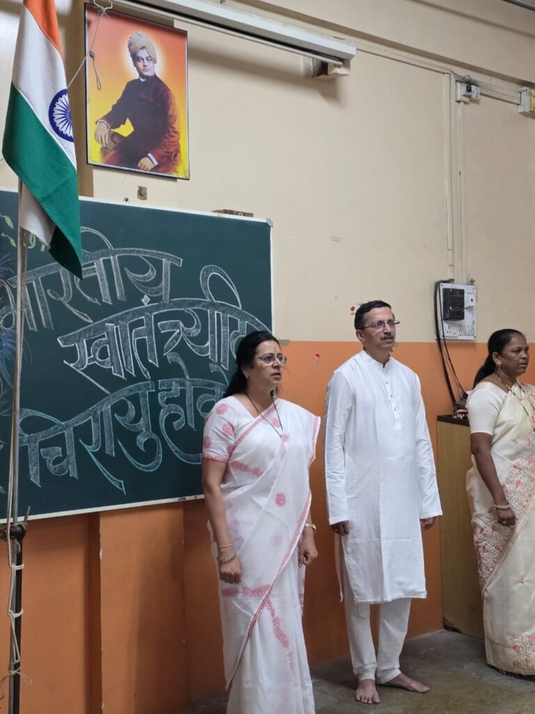 “प्रत्येक नागरिकाच्या मनात देशाप्रती निष्ठा असेल तरच भारत जगामध्ये स्वाभिमानाने विश्वगुरू म्हणून जगाचे प्रतिनिधित्व करू शकेल.” अशा शब्दांत माननीय  प्राचार्य डॉक्टर मेधा कुलकर्णी मॅडम यांनी उपस्थित सर्वांना मार्गदर्शन केले. यानंतर विद्यार्थ्यांना खाऊवाटप करण्यात आले आणि चहापानाने कार्यक्रमाची सांगता झाली.