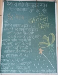 मुले म्हणजे देवाघरची फुले या निरागसतेचे प्रतीक म्हणून सर्व विद्यार्थ्यांना गुलाबाची फुले देऊन त्यांना शुभेच्छा दिल्या. संगीतखुर्ची हा मनोरंजक खेळही घेण्यात आला. विद्यार्थ्यांना रंगीबेरंगी फुगे दिले . खेळानंतर मुलांना त्यांच्या आवडीचा खाऊही देण्यात आला.सर्व मुले खूप खुश होती.